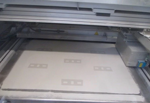 Der im Sand enthaltene Aktivator härtet das Bindemittel und lässt das Objekt Schicht für Schicht von unten nach oben entstehen.